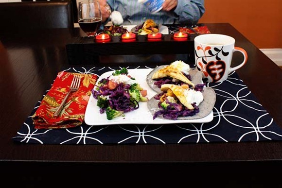 What a very attractive dish. And the place mat and the mug were perfect too. Never tried adding oranges on my veggies and this recipe is another culinary adventure for me. Thanks for the warning about the Whole Food blue corn tortillas.