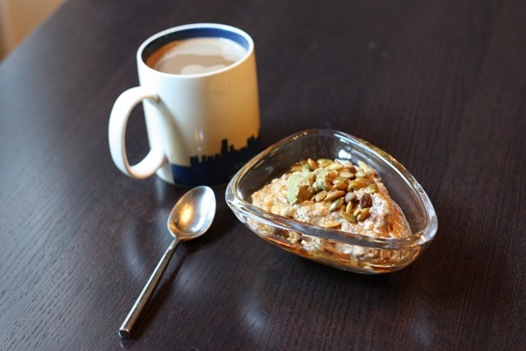 I had pumpkin oats this morning too courtesy of Stonyfield’s seasonal pumpkin yougert which was absolutely amazing!