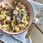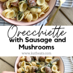 This quick and easy Orecchiette with Sausage and Mushrooms will become your favorite weeknight dinner. The smell of cooking garlic, spicy sausage, and white wine simmering will fill your kitchen with delicious aromas.