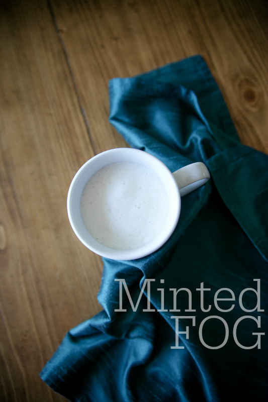 I first had a London Fog at Bread & Cocoa in San Francisco. It’s Earl Gray tea, vanilla and steamed milk. Divine! (Check out Gimme Some Oven’s recipe). I recently ordered one here in Cville and figured I’d attempt to make my own at home and switched up the tea for a minty profile. Here’s how it went!!