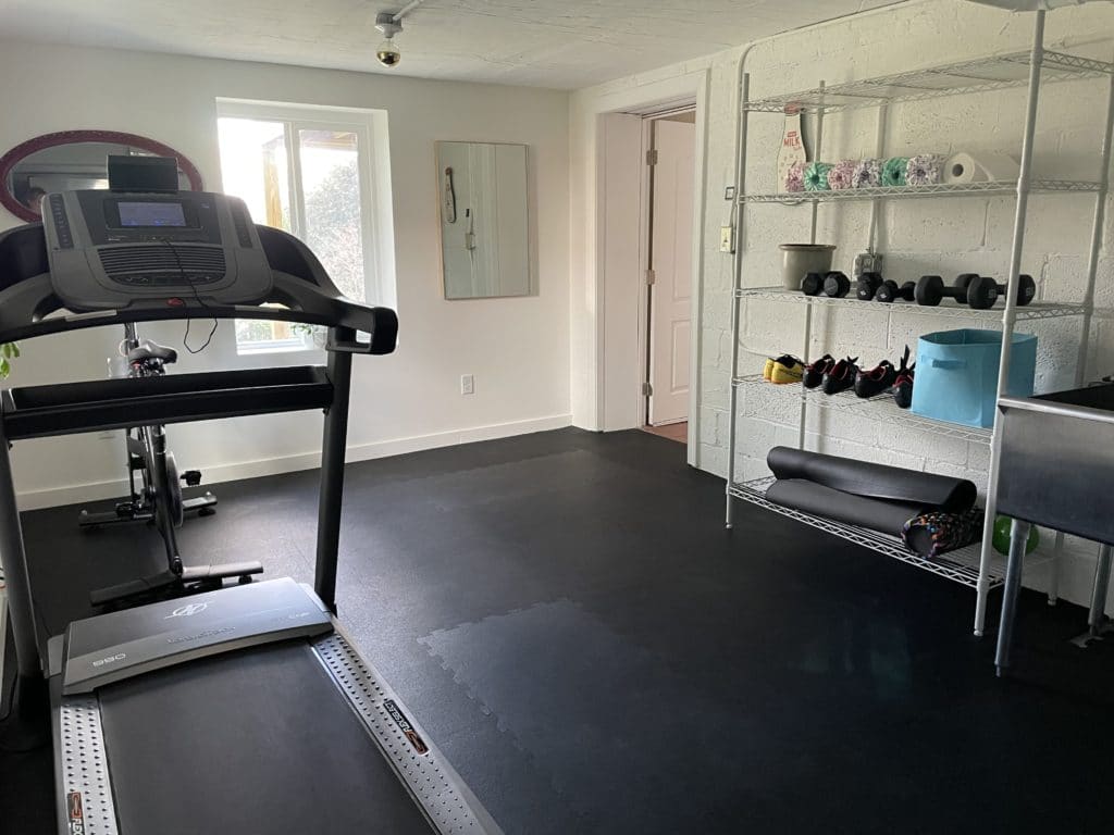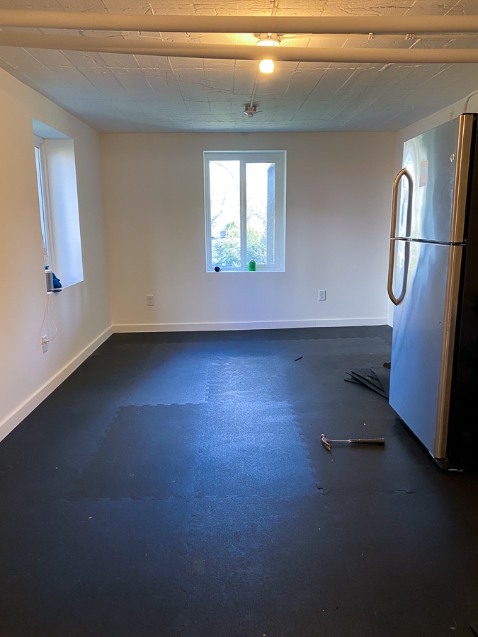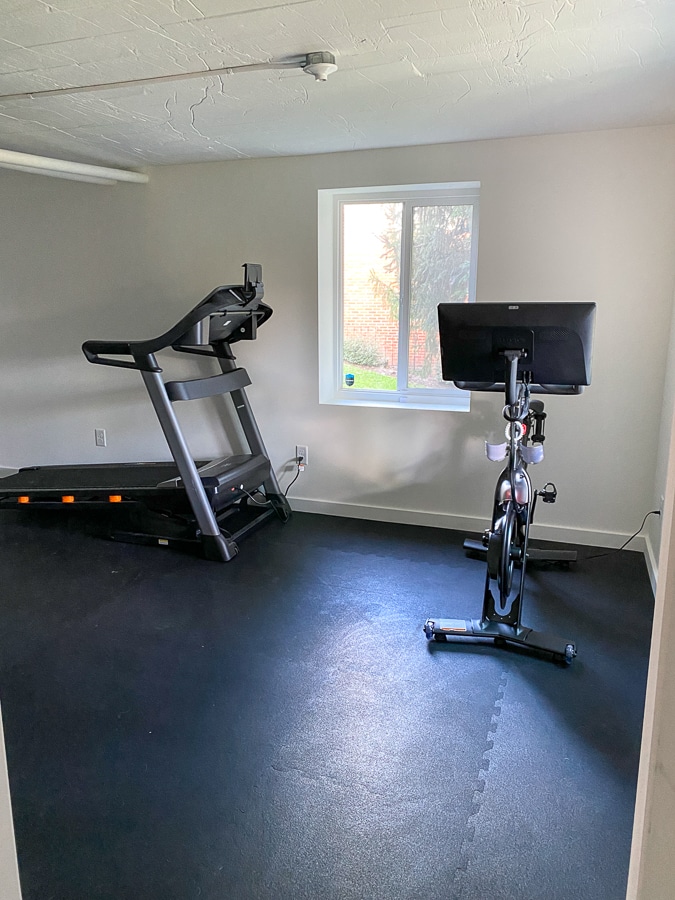 It looks amazing! Love all the natural light in the room. I also have a gym area in our basement and it was such a good use of space. I’ve been thinking of putting similar flooring down, but we have wall to wall carpet down there bc it’s a finished basement. Need to research whether this type of flooring can go on top of carpet.