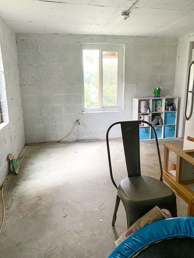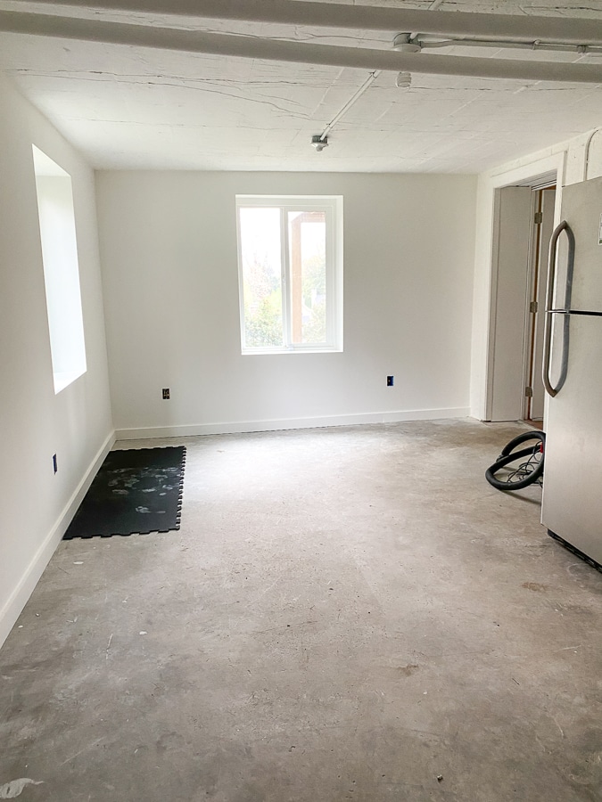 What was once an unfinished storage room in the corner of our basement is now the ideal fitness room for us to use as a home gym! There’s a video of the space at the bottom too!