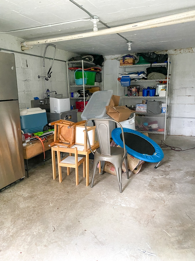 You can see the drink fridge and our coffee table in storage in the back. That coffee table will hopefully move back upstairs someday when our toddler is a little older!