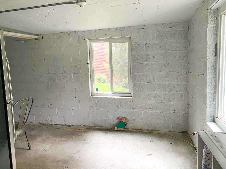 Before this room was an unfinished corner of our basement with no heating or AC. We used it as a giant storage room where we piled everything from home supplies to holiday decorations.