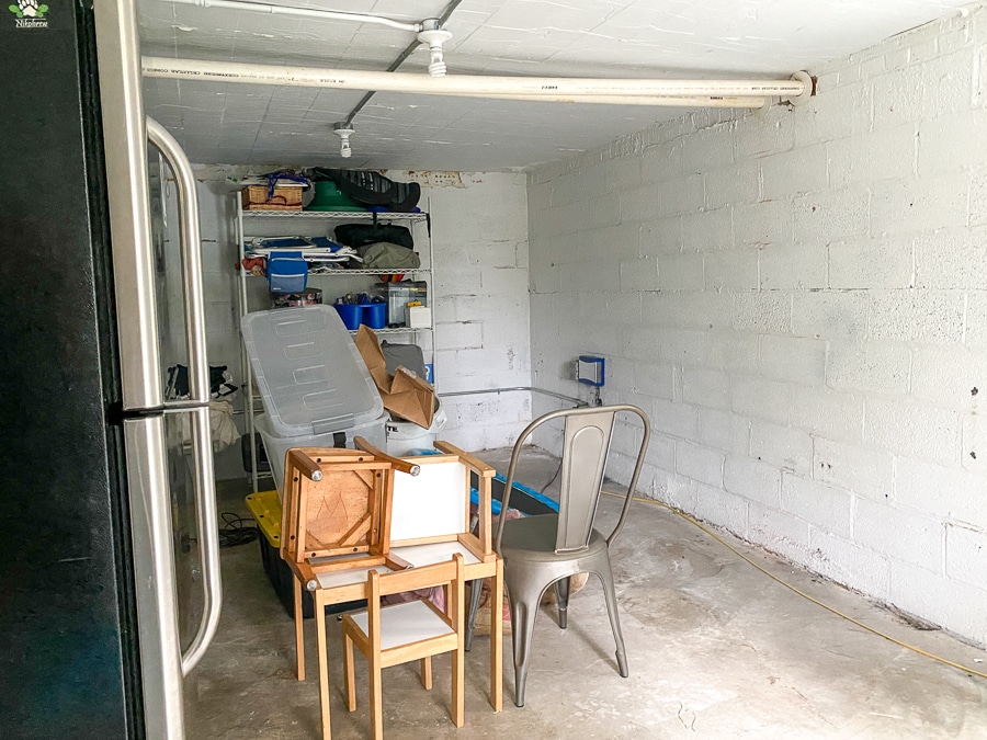 It was actually once used for Matt’s beer equipment, which is why it has the big utility sink. The only real purpose it served in recent years was for our alcohol fridge, which holds extra beer and wine.