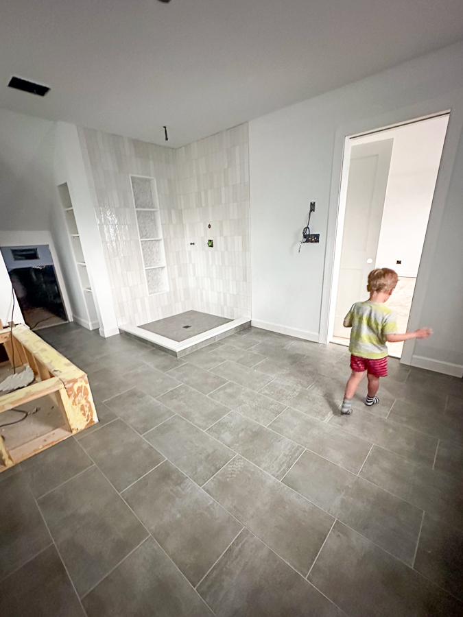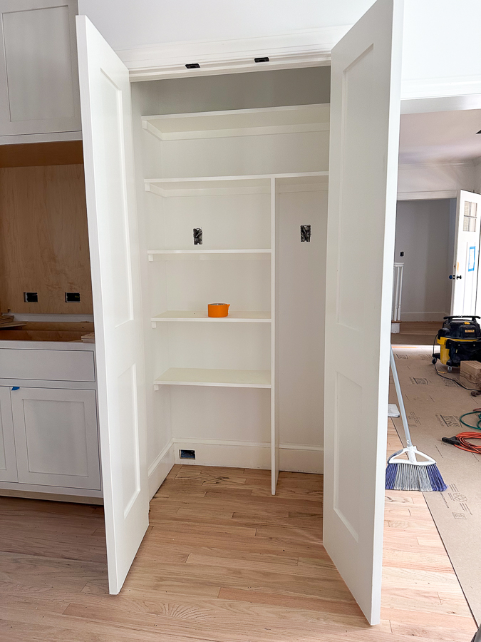Looking SO good. Love the pantry and utility closet. That sliding door is awesome. And that shower, SO beautiful. Bet you’re so excited.