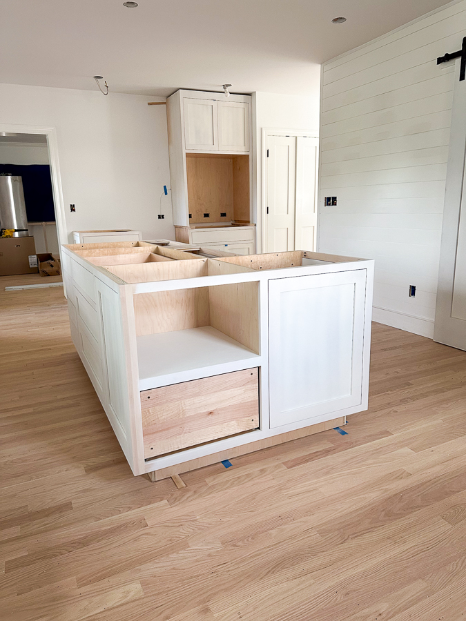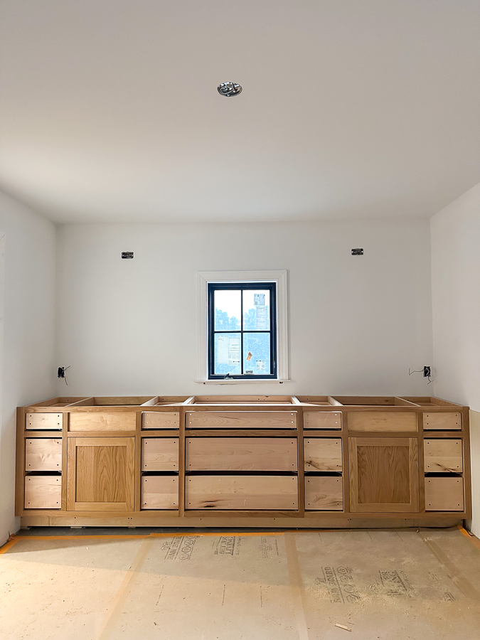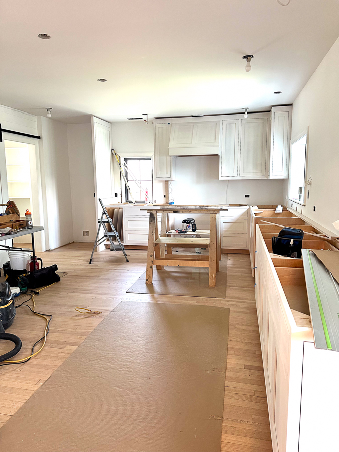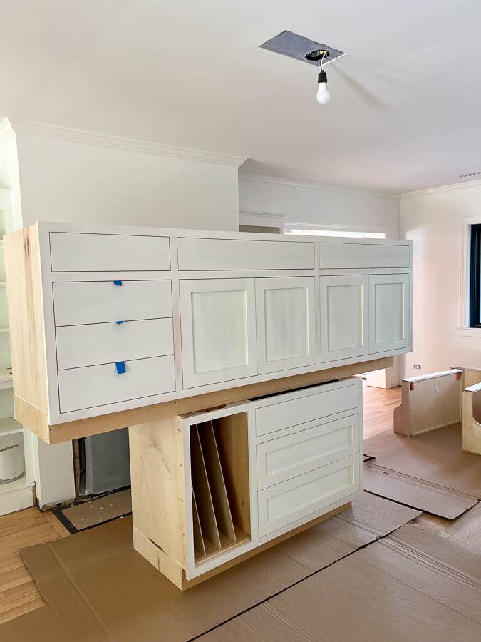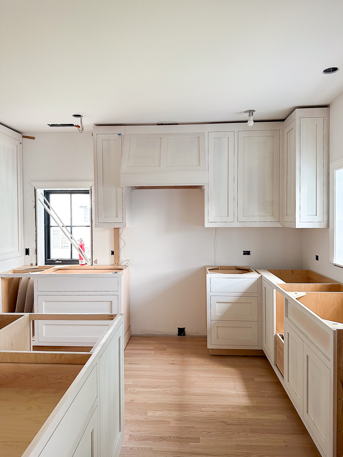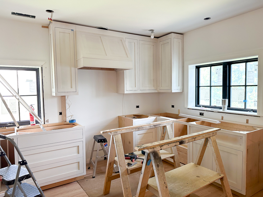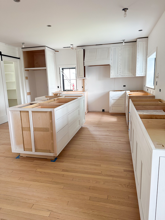 Here is the progress on the custom cabinets for our new kitchen, mudroom, and primary bathroom!