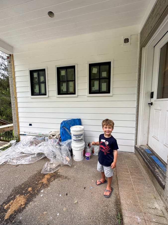 And finally, the outdoor siding is getting some paint! There will be a low porch here some day…