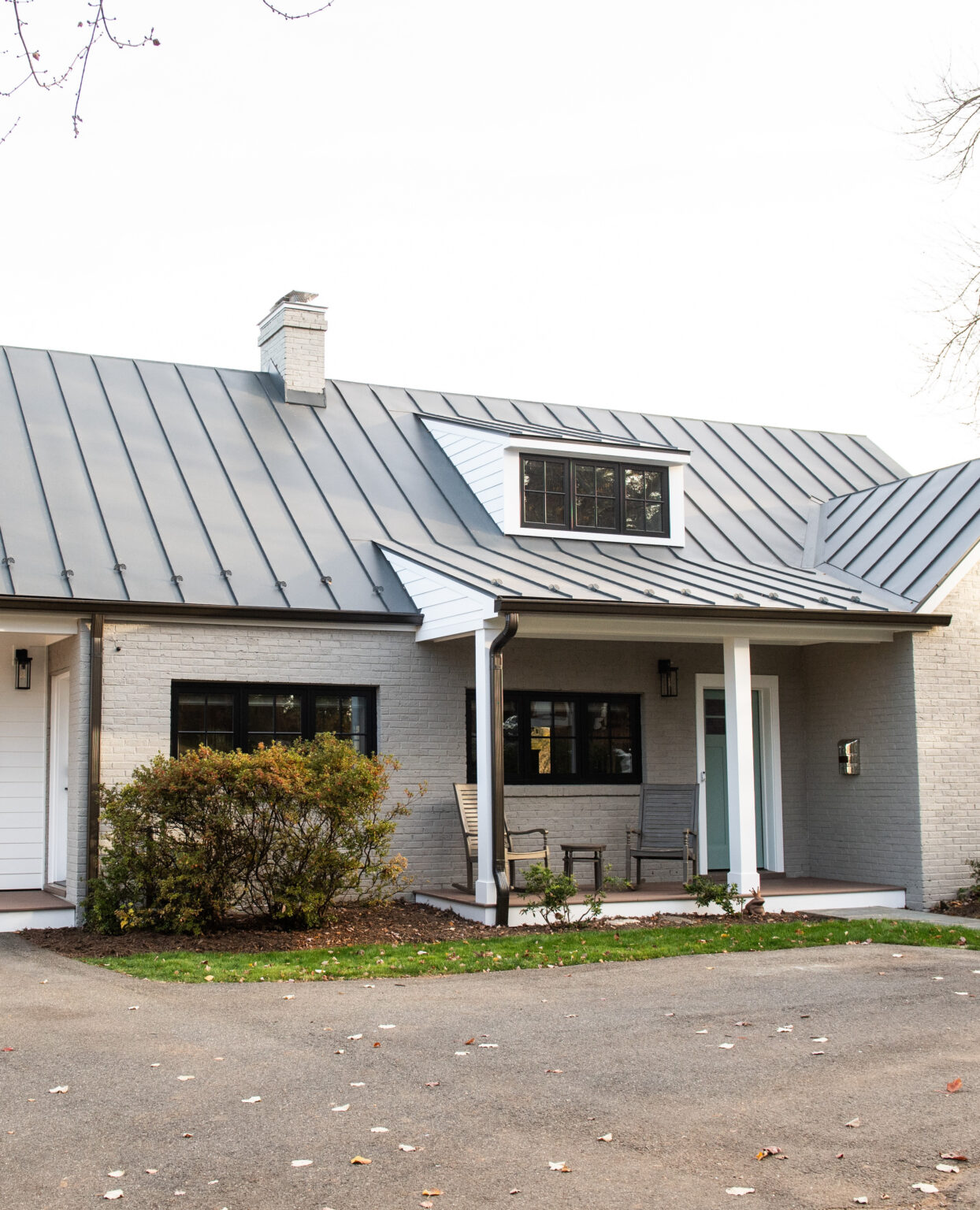 We contemplated doing a rubber roof on the flat tops of the dormers that you can’t see from the ground, but it ended up being the same cost with no benefit, so we continued the metal there too.