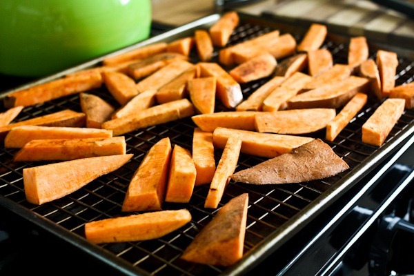 I love sweet potato fries but they always turn out a little soft when i bake them – but you have solved the problem for me… **grabs coat and goes on a shopping mission for a wire rack**