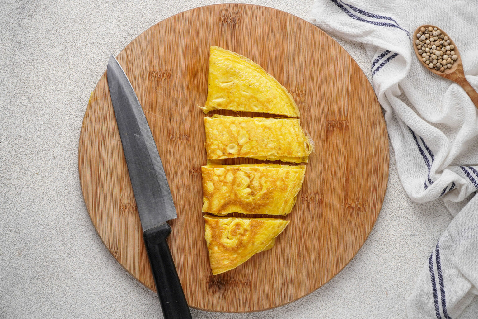 Cut your egg fold or omelet into 4 sections.