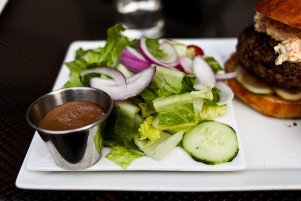 I ordered a regular grass-fed burger topped with pimento cheese, pickles and tomato. I ordered a multigrain bun, but was served brioche instead – which was ok because it sure tasted good. The pimento cheese wasn’t my favorite, but overall, great burger.