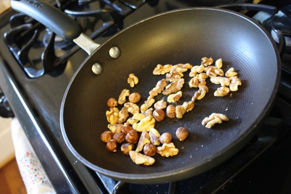 I used walnuts and a few hazelnuts for the pesto – a heaping 1/3 cup.