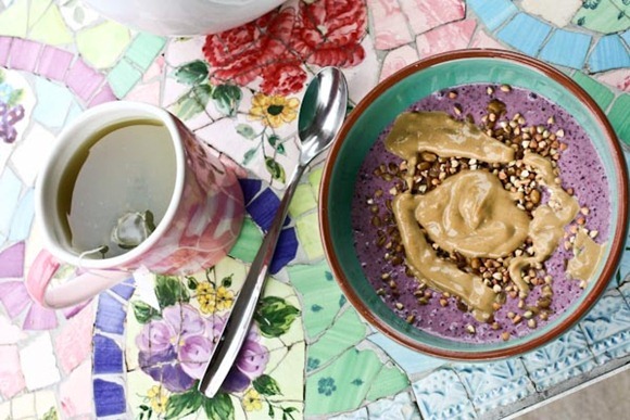 What a beautiful purple breakfast.! The brown goes so nicely with the colour of the smoothie. Brown and purple, who would have thought? 🙂