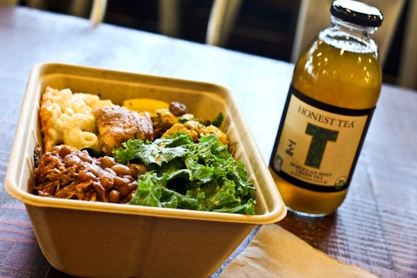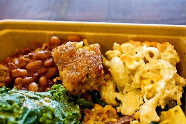 But of course the backside of my container was filled with a few comfort foods: BBQ, corn casserole and mac n cheese. I nearly squealed when I saw the mac and cheese : )