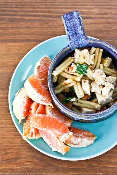 Yummy pasta! I wish I liked oranges more. I just find them to be too much darn work – and too cold for my sensitive teeth. (Those are probably just excuses, though, since I think the true reason is that I just don’t like ’em!)