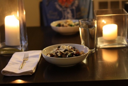 That dinner looks comforting and yummy! And the atmosphere looks like a nice, casual, romantic dinner with your hubby!