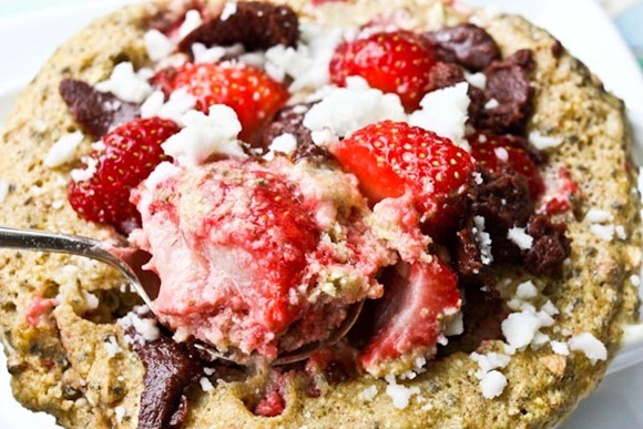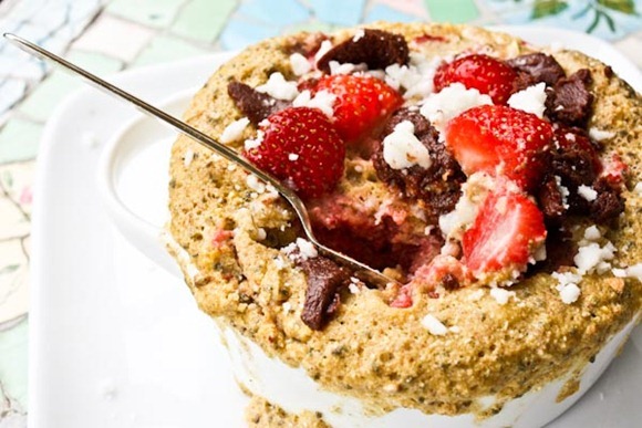 NOTE: Whole eggs work great in baked buckwheats, but microwave versions are best with flax eggs!! The egg took much longer to cook and created too much volume. I’d recommend a flax egg for the microwave. And less strawberries unless you want a mess!