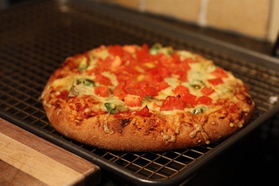 That pizza looks amazing! Everytime I see the bread on your blog, it makes me want to run over to our local Great Harvest Co. and pick some up! My favorite bread that they have is the “Cinnamon Chip Bread.” I loooove making grilled Almond Butter and jelly sandwiches on it!