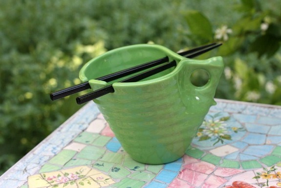 That bowl is AWESOME!! Love the color and shape AND the chopsticks!! 😀
