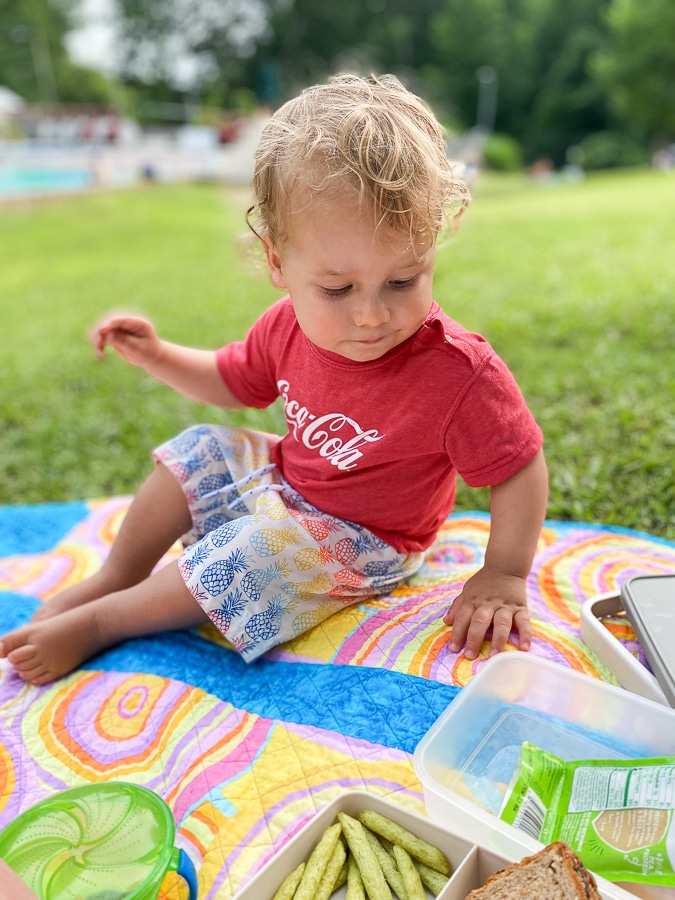 We swam for an hour and then had some snacks on our quilt while we dried off. The boys chased each other around for a good 20 minutes before we headed home.