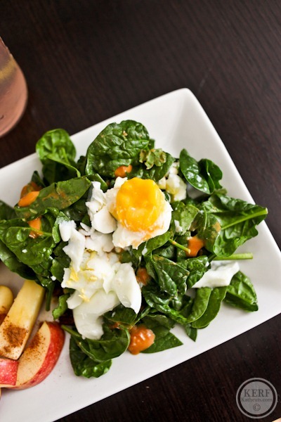 And a salad topped with a “poached egg.”