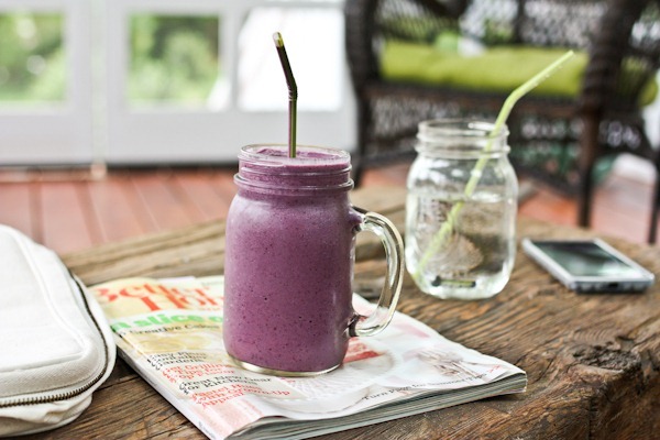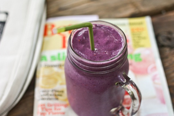 I love the color of the smoothie! Purple is my favorite. 🙂 Those burgers look so yummy and the bun looks fluffy and delicious!