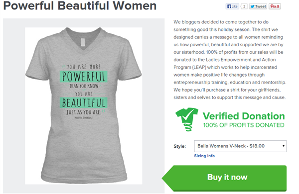 You might also suggest that folks donate directly to the charity, rather than have a portion of their cost go towards a t-shirt company. http://www.leapforladies.org/donate