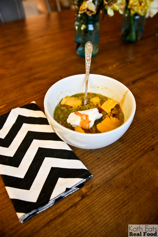 We were both pooped when we got home and just relaxed around the house. We had an easy dinner of split pea soup we made with the leftover Easter ham. It was based on this recipe and topped with Greek yogurt and cheese!