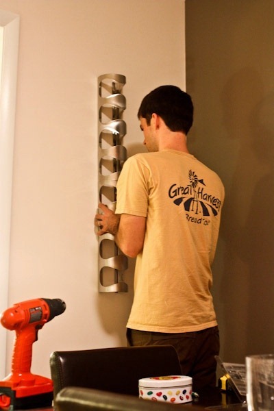 Matt hung another photo (one per night!) and these funky wine racks from IKEA!