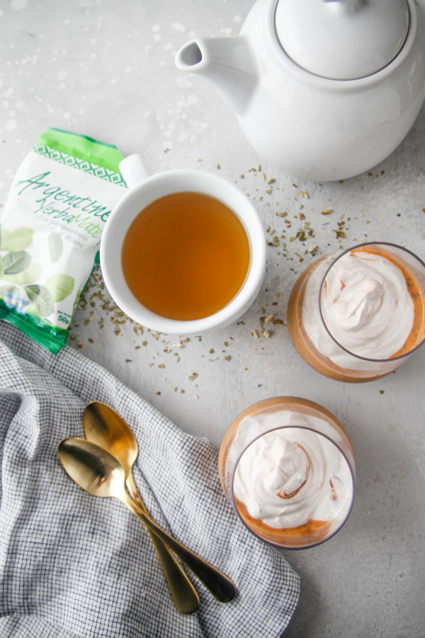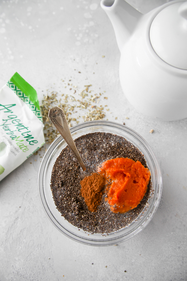 I’m excited to share this autumn appropriate pumpkin chia pudding recipe, jazzed up with a touch of caffeine, antioxidants, and flavor from Argentine Yerba Mate tea and topped off with a maple cinnamon Greek yogurt “whip!” This post is sponsored by National Institute for Argentine Yerba Mate.