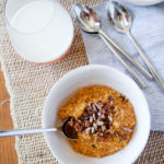 Millet is something I normally think of as a side dish at dinner, the base of a salad or perhaps birdseed! But this grain-like seed makes a wonderful breakfast porridge too. It takes a wee bit longer to cook than oatmeal, but the texture is worth the wait. Think of it as a cross between steel cut oats, rice, and couscous. Millet is also naturally gluten-free, so it’s a good option for those who are gluten-sensitive.