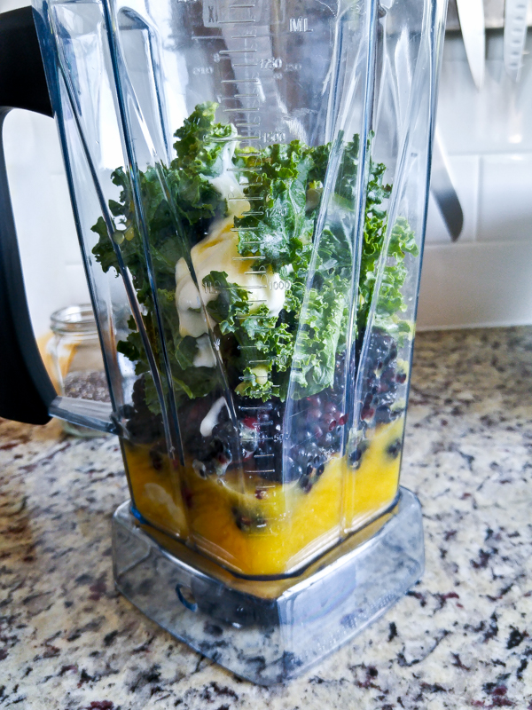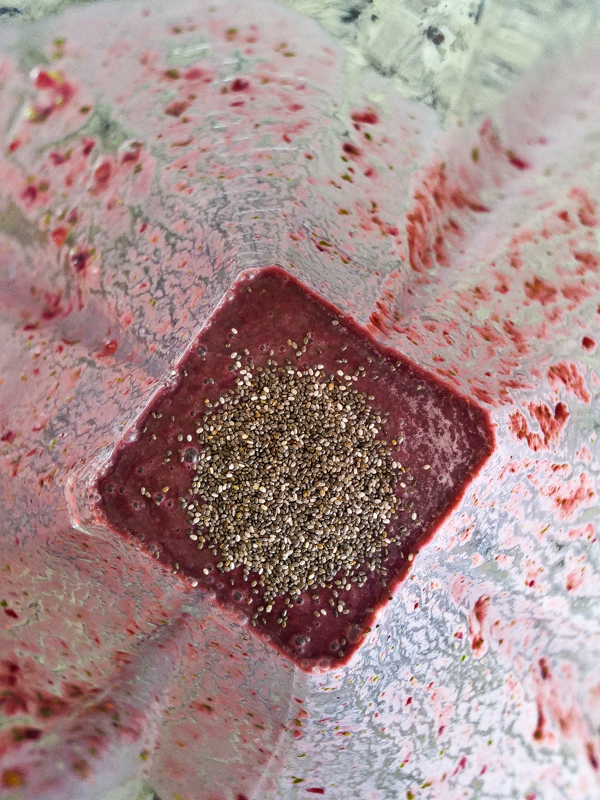 After it was purple and blended, I added a few tablespoons of chia seeds for some crunchy texture.