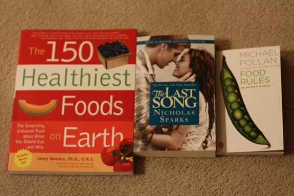 This 150 Healthiest Foods book is awesome!!! I just picked it off the shelf and really liked what he had to say. I’ve been reading Nicholas Sparks since The Notebook so I got the new one on that (although his first 2 books were by far the best). And Michael Pollan rules and so does food!! (I like to think the title means Food Rules and Dogs Drool and not so much ‘rules’ as in commands