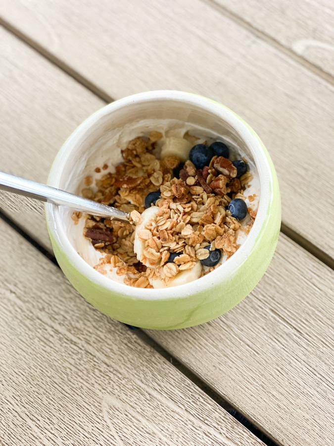 It’s also yogurt bowl season. Loving all the fresh berries!! Plus homemade granola, bananas, and PB powder.
