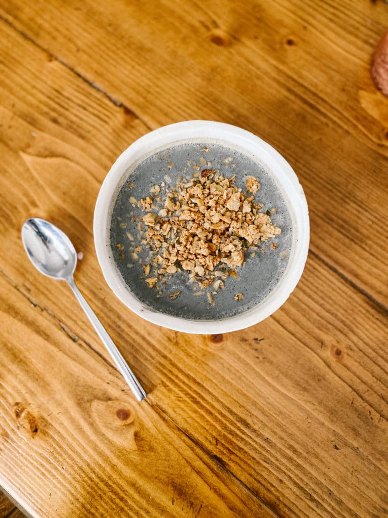 Daily Harvest smoothie bowl. (You can get $25 off your first box there too with the code katheats!) This was Black Sesame and Banana – loved the new flavor!