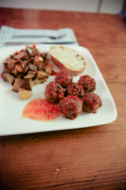 Served with a mix of eggplant, zucchini and tomatoes and some crusty homemade bread. Extra RPJ for dunking!