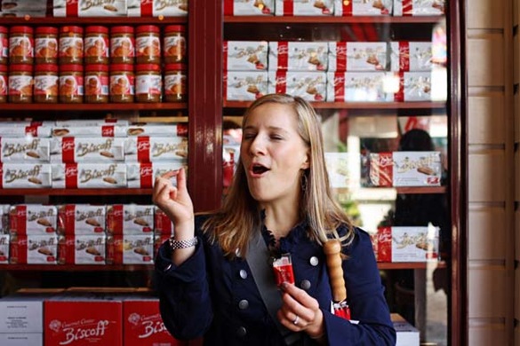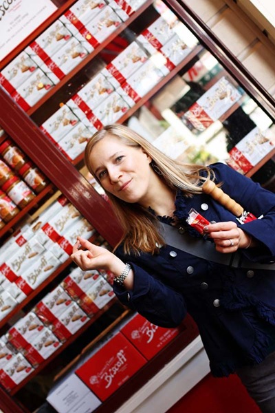 love the red umbrella pix, and you at the biscoff store – 🙂
