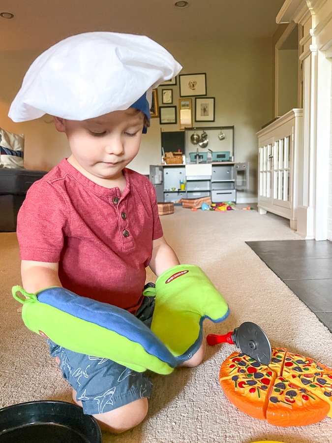It’s at the neighbors’ house! While he does love it, we only plan with it for about 10 minutes at a time. It’s also not very easy to use…