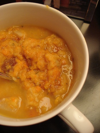 They made their comeback!! Unfortunately this is the third-to-last of the mystery recipes, so I can’t let you know which vegetables we chowed down tonight. But this soup was fabulous, thanks to a secret ingredient 🙂