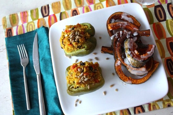 Those stuffed peppers look great! The squash with the coconut looks yummy, too. I’ll have to try that.