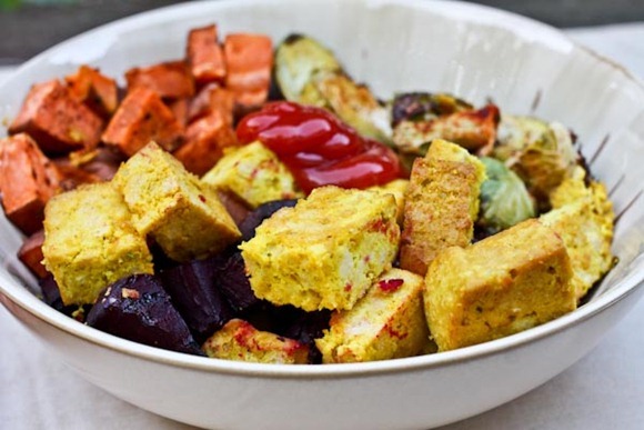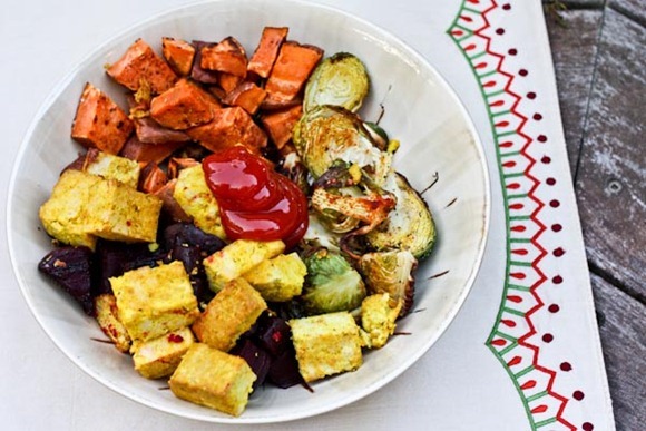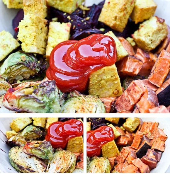 The roasted veggies and tofu look so delicous, I´ll try the roasted potatoes soon:) You take such a beautiful pictures, even the ketchup looks great:)