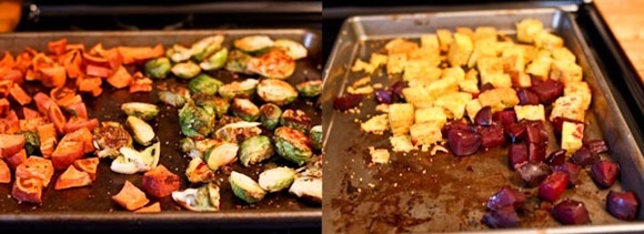 Hi! Your dinner looks yummy!!(: May I know how long do you roast the veggies for and at what temperature? and do you roast them separately?