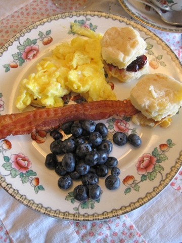 I love your grandparent’s fancy china for every meal! Eggs should always be served on fancy plates 🙂