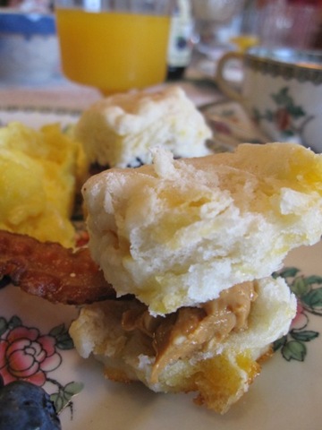 We went up to Gram + Pop’s for a goodbye breakfast. Gram had cooked scrambled eggs, bacon and some little cheesy biscuits for us!