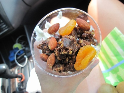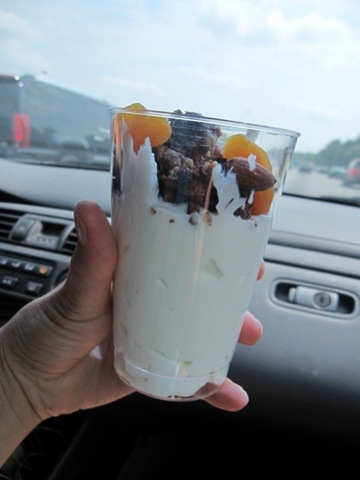 Lunch was an interesting but delicious 70MPH creation made with a greek yogurt I picked up from TJ’s yesterday intending to eat for breakfast. We packed it in a cooler on ice to have for lunch today so we wouldn’t have to stop.
