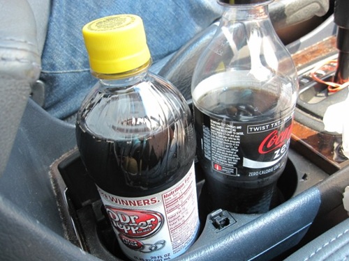 After dropping Larbs off at the airport and sitting in traffic for hours and hours, we stopped into a Target we spotted from the side of the road for a bathroom stop and drinks. I got a diet Dr. Pepper. I drank half and then started to feel blah, so I switched back to water.