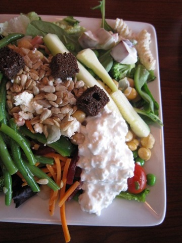 I piled on the veggies and added a few cold salads, nuts, seeds and cottage cheese