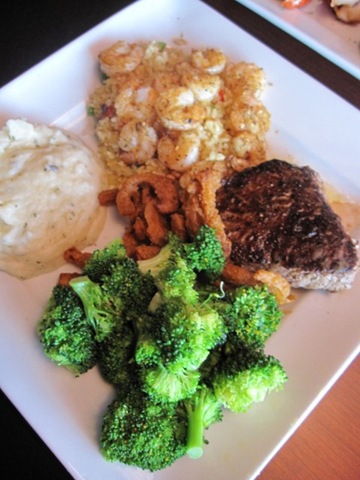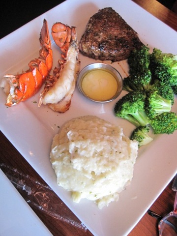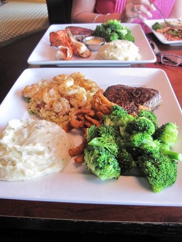 Our entrees were surf and turf – steaks with shrimp and lobster.