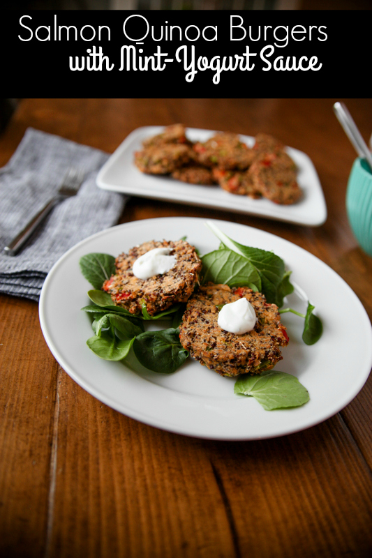 Salmon Quinoa Burgers with Mint-Yogurt Sauce